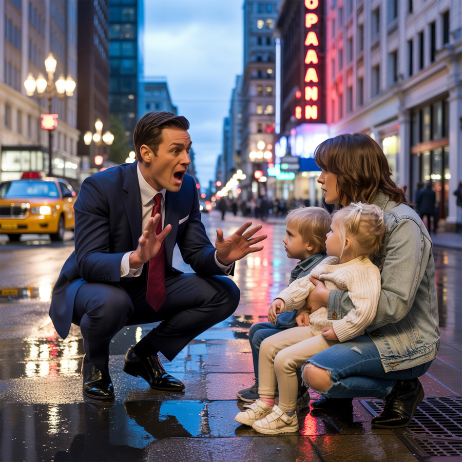 For a moment, time froze. The bustling street disappeared, leaving only the shocking truth: the woman he had once dreamed of, now sitting on the ground with two hungry children.