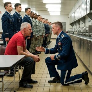 The memory snapped shut as quickly as it had opened. Henry blinked, the chow hall rushing back into focus. The tremor in his right hand had stopped, replaced by a rigidity that turned his knuckles white. He looked at Captain Reed. Really looked at him, seeing not the rank, but the boy beneath the uniform. “I’m not leaving until I finish my coffee,” Henry said. Reed let out a sharp, incredulous breath. He turned to the largest Marine in the group, a gunnery sergeant who looked like he was carved out of granite. “Gunny, escort this civilian off the premises. Use necessary force if he resists. He’s trespassing.” As the gunnery sergeant stepped forward, cracking his knuckles, the air in the chow hall grew heavy. But three tables away, a young corporal named Mason Cole was frozen mid-chew. Cole wasn’t part of the officers’ clique. He was just a grunt grabbing a quick meal before his shift. But he was a grunt who loved history. He had been watching the old man since he sat down. He had noticed something the captain had missed in his arrogance. When Henry had reached for his napkin, the flap of his field jacket had fallen open for a split second. Cole had seen the lining. It wasn’t the standard olive drab. It was customized. A faded silk map of the A Shau Valley sewn into the fabric, and pinned to the inner pocket was a small tarnished metal device. It wasn’t a standard ribbon. It was a set of miniature wings, but not the kind issued today. They were the heavy, unsanctioned, theater-made wings of the Ridge Runners, a defunct, legendary transport squadron that didn’t officially exist on most rosters because they flew missions that command didn’t want written down. Cole looked at the lighter in the captain’s hand. Juicebox. The name triggered a memory from a mandatory history brief he had slept halfway through. But the name—THE name—had stuck because it was so stupid… until the instructor had explained it. Panic spiked in Cole’s chest. He dropped his fork, the metal clanging loudly against his tray. He scrambled out of his seat, ignoring the glare of his squad leader. He didn’t intervene. He knew a corporal couldn’t stop a captain on a power trip. He bolted for the exit, sprinting into the hallway toward the administrative offices. He needed a phone, and he needed someone with stars on their collar. Cole burst into the hallway, his boots skidding on the waxed tile. He spotted a wall phone reserved for official use and snatched the receiver, his fingers trembling as he dialed the direct line to the base commander’s adjutant. He knew he was risking a court-martial for jumping the chain of command. But he also knew that if Captain Reed threw that old man out, the fallout would be nuclear. “Command Deck. Sergeant Davis speaking.” “Sergeant, this is Corporal Cole, Echo Company. I need to speak to General Harper immediately. It’s a Code Red emergency in the chow hall.” “Code Red? Cole, if this is a prank—” “It’s not a prank,” Cole hissed, looking back toward the chow hall doors. “There’s a captain harassing an elderly veteran. He’s about to physically remove him. The captain took his lighter. It says Juicebox on it.” There was a silence on the other end of the line. A silence so profound it felt like the line had gone dead. Then the sergeant’s voice came back, but the tone had changed completely. It was sharp, breathless. “Did you say the lighter? Says Juicebox?” “Yes, Sergeant. The old man is… He’s old. Red shirt. Tremors.” “Don’t let them touch him,” the sergeant ordered, his voice rising to a shout. “DO NOT let them lay a hand on him. I’m patching you to the general’s personal mobile. Stay on the line.” Inside the general’s office a mile away, General Harper was adjusting his tie in the mirror. He was a stern man, a three-star general who had seen combat in the Gulf and beyond. But he revered the generation that came before him. His phone buzzed on the mahogany desk. He ignored it. It buzzed again, persistent. Then his office door flew open. His aide, a major, looked pale. “Sir—it’s the chow hall. Someone has Henry Lawson.” Harper froze. “Henry? He’s here? I thought he wasn’t coming until the ceremony tonight.” “He came early to eat, sir. A captain—Captain Reed—is trying to arrest him for stolen valor. He confiscated his lighter. The Juicebox lighter.” Harper’s face went from calm to a mask of fury in a heartbeat. He didn’t ask questions. He didn’t grab his cover. He stormed out of the office, moving with a speed that terrified the staff in the outer room. “Get the car,” he barked. “No—forget the car. We run. It’s faster.” “And get the MPs on the radio. Tell them if anyone touches Mr. Lawson, I will have their stripes before they hit the floor.” Back in the chow hall, the situation had deteriorated. The gunnery sergeant had a hand on Henry’s shoulder. Henry sat immovable, his body rigid, his eyes locked on Reed. “I’m asking you one last time, Captain,” Henry said, his voice low. “Give me my property and let me eat in peace. You don’t know what you’re doing.” “Oh, I know exactly what I’m doing,” Reed sneered. “I’m taking out the trash. Gunny, hoist him.” The Gunny tightened his grip. “Let’s go, old-timer. Don’t make me hurt you.” “You’re hurting yourself, son,” Henry whispered. Reed laughed. A harsh barking sound. “You threaten me? You threaten a commissioned officer? That’s assault. Add it to the list. I want this man in cuffs. I want him processed. And I want a psych eval done because clearly he’s delusional if he thinks he has any standing here.” Reed turned to the crowd, playing to his audience. “This is what happens when standards slip. We tolerate mediocrity. We tolerate imposters. Not on my watch. This lighter—” He held it up again. “This is a mockery. A call sign is earned in blood. Not bough
