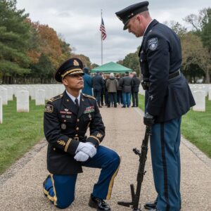 At Arlington Ridge Veterans Cemetery, rows of white headstones stretched beneath a pale gray sky, clean and solemn, each one carrying a name, a date, a sacrifice. Retired Major General Nathaniel Brooks arrived just after eight-thirty, dressed in full formal uniform despite the summer heat. At sixty-six, Brooks still carried himself like command had never left his bones. His silver hair was cut close, his medals precisely placed, his gloves folded in one hand. He had not worn that uniform for attention. He wore it because Benjamin Ward had once dragged him out of a burning convoy in Kandahar and saved his life. Some debts were not repaid with words.