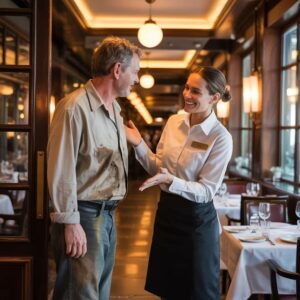 The man glanced at his boots, then back at Ricky. “I have money. American currency. Does the dress code apply to the cash, or just the person holding it?” The room fell silent. Mr. Henderson lowered his glass. The tourists stopped bickering. Ricky’s face flushed red. He despised being challenged, especially by someone he considered beneath him.