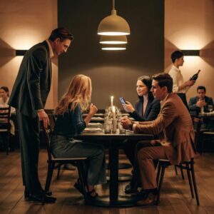 The waiter stood frozen with the unopened bottle of wine, eyes darting between us. At a nearby table, a woman in a blazer raised her own phone, recording with a look of pure disgust. Two older men at the bar watched Ryan like they were memorizing his face.