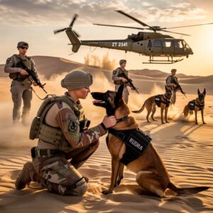 Twelve military working dogs stood in formation—Belgian Malinois and German Shepherds, elite assets trained for combat detection, patrol, and handler protection. These dogs were conditioned to obey instantly, even under fire.