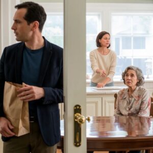 I pushed the door open and froze. Madison stood over my mother at the kitchen table, her manicured hand clamped around Mom’s wrist, twisting. Mom’s eyes were wet, her other hand trying to pull free. On the table sat the missing envelope—empty—next to Mom’s pill organizer.