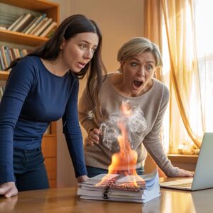 She stormed across the room before I could stop her, grabbed the first stack of bound notebooks from my desk, and hurled them into the fireplace in the corner. At first I thought she was bluffing, trying to scare me. Then she snatched more—drafts, annotated files, backup binders, years of handwritten calculations—and shoved them into the flames.