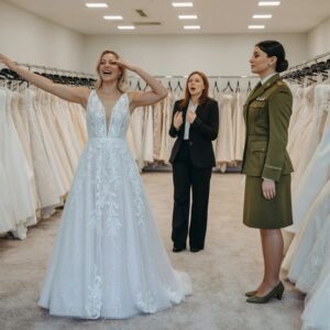 She turned back toward the mirror, lifting her chin as if nothing had happened. Heat shot up my neck. My face burned, but I stayed still. Years of training in active combat zones had taught me how to keep my cool under fire, but it didn’t stop the acid of humiliation from crawling under my skin. People stared, then quickly pretended not to. The sales clerk shifted from foot to foot. My mother looked away, suddenly fascinated by a rack of bridesmaid dresses. Nobody said a word.