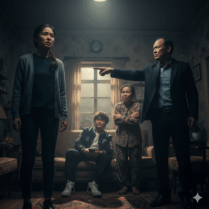 Absolute silence descended upon the room. Her mother fainted. The police officer was wide-eyed. And Mr. Sơn, his entire world collapsing, stumbled back. He looked at his wife, the betrayer. He looked at Bảo, his golden boy, the child of another man. Then he looked at Kim, the daughter he had beaten and driven away. He grabbed his chest, his face turning purple, and convulsed, falling to the floor.