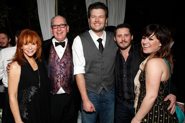 Todd Williamson/Getty Reba McEntire, John Espositio, Blake Shelton, Brandon Blackstock and Kelly Clarkson in Los Angeles in February 2012