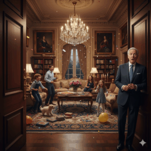 The doors closed, and Adrienne caught his reflection—a man in a suit changed not by wealth but by two babies in orange who had forced him to rewrite his house and himself.