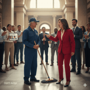 Mr. Thomas continued his work, pausing only briefly to greet a passing male clerk by name, exchanging a warm handshake like old friends. The mail clerk smiled wide, a little more respectful than you’d expect towards someone in a janitor’s uniform. Then came Lily, the new intern. Barely a month into her role, she approached nervously, holding a to-go cup in both hands. She had spotted Mr. Thomas earlier after witnessing the confrontation. Her eyes held a quiet mix of concern and admiration.
